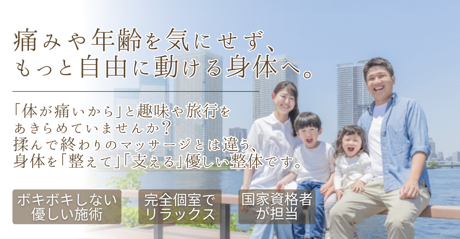バキバキと音を鳴らすような怖い施術はいたしません。